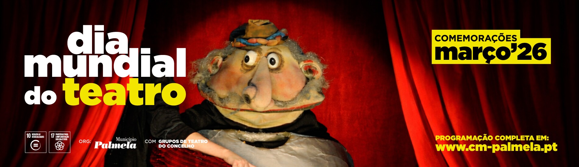 A Câmara Municipal de Palmela promove, ao longo do mês de março e início de abril, um vasto programa de espetáculos motivado pelo Dia Mundial do Teatro, comemorado a 27 de março, que inclui espetáculos, exposições, oficinas, ensaios abertos, apresentações literárias e iniciativas comunitárias, envolvendo equipamentos culturais, associações e companhias locais e nacionais.