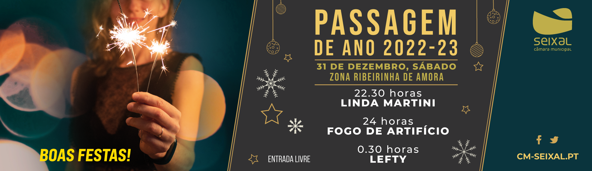 À meia-noite, 2023 é recebido em grande com um sensacional fogo de artifício lançado sobre a Baía do Seixal e em todas as freguesias do concelho, enchendo de luz e cor os céus do município.