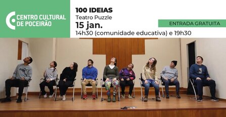 O Teatro Puzzle, da APPACDM - Associação Portuguesa de Pais e Amigos do Cidadão Deficiente Mental de Setúbal, apresenta o espetáculo “100 Ideias”, no dia 15 de janeiro, no Centro Cultural de Poceirão, com entrada gratuita. A sessão das 14h30 é exclusivamente para a Comunidade Educativa e a das 19h30 é aberta ao público em geral.