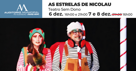 O Auditório Municipal de Pinhal Novo – Rui Guerreiro recebe o espetáculo “As Estrelas de Nicolau”, pelo Teatro Sem Dono, nos dias 6, 7 e 8 de dezembro.