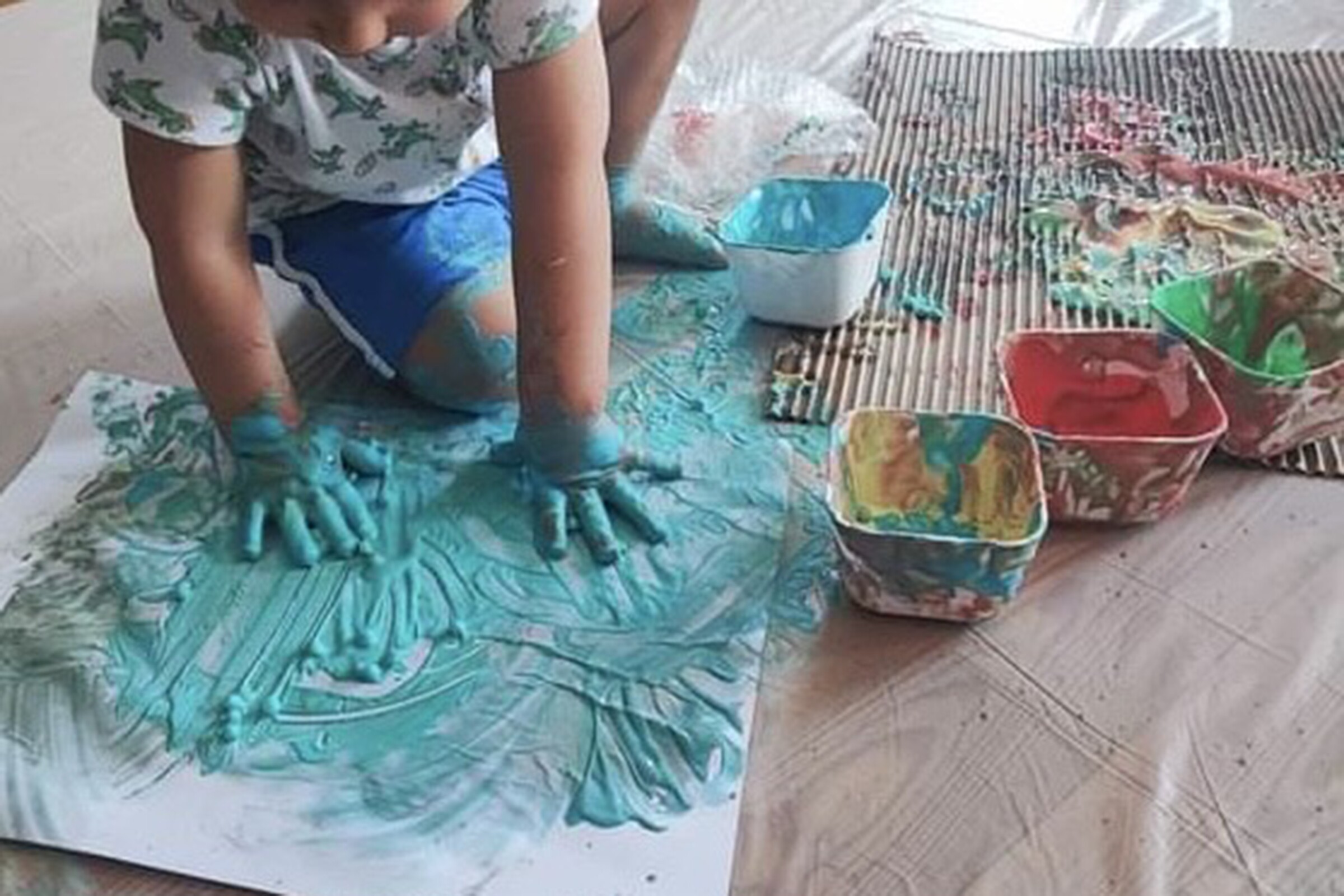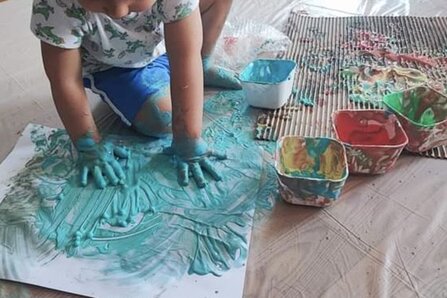 Oficina de expressão plástica para crianças, baseada na composição e colagem com materiais de diferentes texturas.