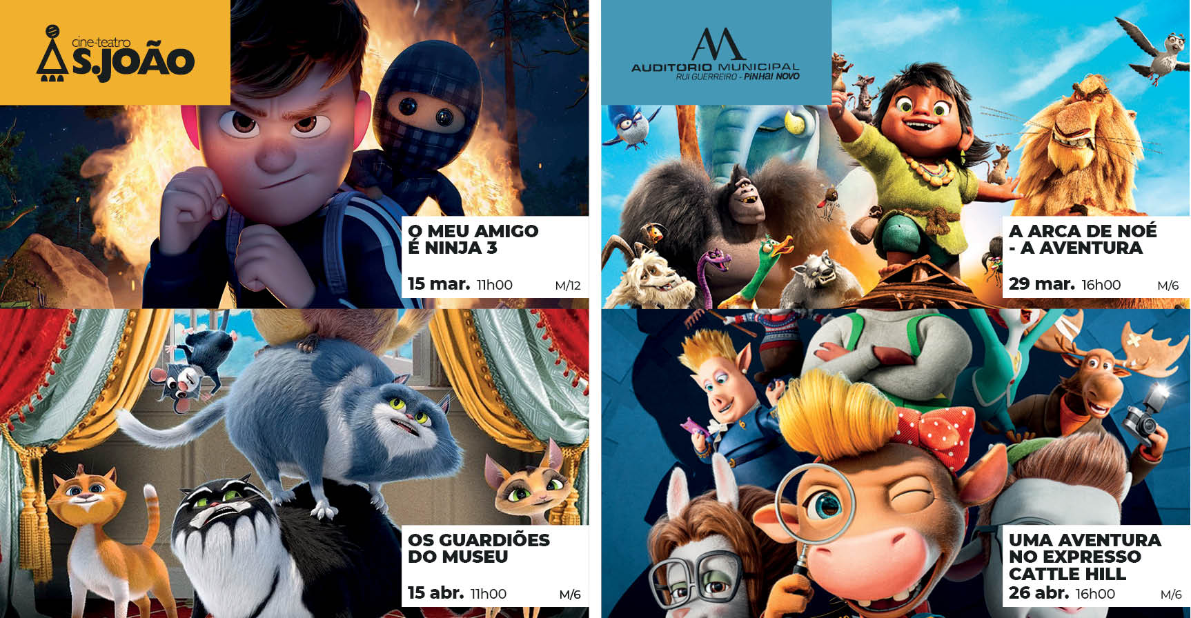 As salas do Cine-Teatro S. João, em Palmela, e do Auditório Municipal de Pinhal Novo - Rui Guerreiro preparam-se para receber quatro grandes produções internacionais durante os meses de março e abril de 2026. A programação foca-se no entretenimento familiar, apresentando versões dobradas em português e classificações etárias para diversas idades.