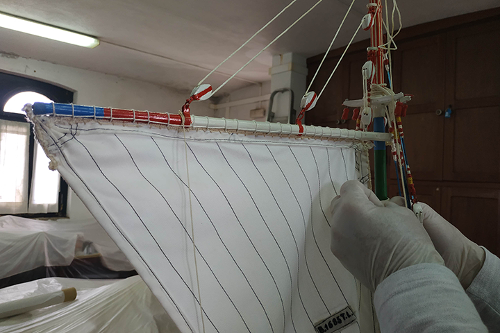 Destaca-se a intervenção realizada na miniatura do barco varino