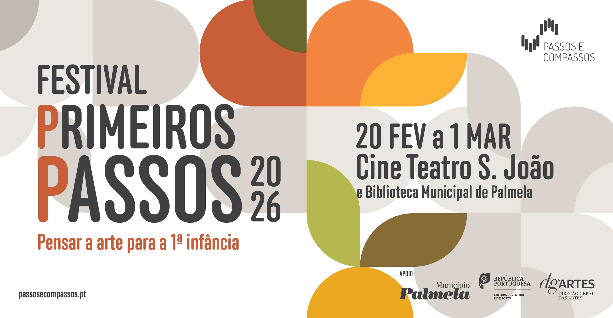 A Associação Cultural Passos e Compassos - Associação para a divulgação e desenvolvimento das artes de espetáculo, promove, de 20 de fevereiro a 1 de março, a segunda edição do Festival Primeiros Passos, evento dedicado a pensar e celebrar a arte para a primeira infância, dirigindo-se especialmente a bebés dos 0 aos 36 meses e famílias, bem como à comunidade educativa e artística.