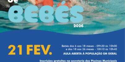 Realiza-se no dia 21 de fevereiro, uma Mega Aula para Bebés, destinada a bebés dos 6 aos 36 meses. A aula é aberta à população em geral.