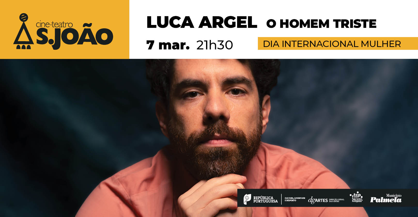 O músico, poeta e escritor luso-brasileiro Luca Argel sobe ao palco do Cine-Teatro S. João, em Palmela, no dia 7 de março, às 21h30, para apresentar o seu mais recente álbum, “O Homem Triste”. O espetáculo está integrado nas comemorações do Dia Internacional da Mulher promovidas pelo Câmara Municipal de Palmela.