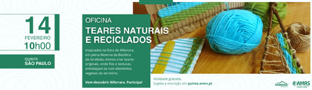 Inspirados na Flora de Alferrara, Reserva da Biosfera da Arrábida, iremos desenvolver teares originais e criativos, com elementos disponíveis na Natureza.