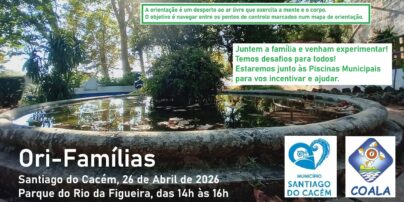 A atividade decorre nos espaços do parque do Rio da Figueira, no dia 26 de abril, das 14h às 16h, e é de participação livre para todos os interessados, bastando a inscrição para: gap@cm-santiagocacem.pt no sistema OriOásis até dia 24 de abril.