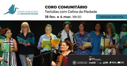 O Centro Comunitário de Águas de Moura recebe, nos dias 18 de fevereiro - sessão cancelada - e 4 de março, às 18h30, duas sessões do Coro Comunitário, uma iniciativa que propõe tertúlias em torno do cancioneiro tradicional, orientadas pela reconhecida música e investigadora Celina da Piedade.