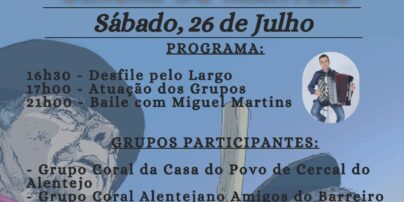 Cercal do Alentejo recebe no próximo dia 26 de julho, no Largo dos Caeiros, o XXXII Encontro de Grupo Corais, organizado pela Casa do povo e pelo seu Grupo de Cante Alentejano.